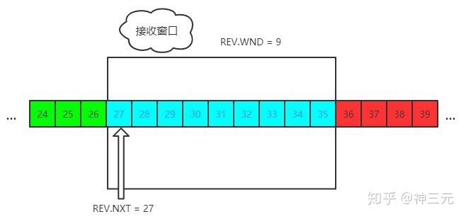 REV 即 receive,NXT 表示下一个接收的位置,WND 表示接收窗口大小。